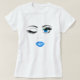lápide azul e olhos fechados de repouso olhos falso traços gráficos azuis vibrantes lábios brilhante. Estilo de Tendy de Camisa de T-Shirt Pale Grunge para Garotas. Lâmpadas de Maquiagem de Batom e Falso Volume de Lash Tee Espesso.