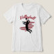 Esta camiseta apresenta uma silhueta de um jogador de vôlei em ação contra um pano de fundo de uma bandeira americana, com a palavra "voleibol" acima.