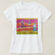 Barcos à vela com velas coloridas, navegando em águas oceânicas de laranja, verde limão e rosa, fazer essa camiseta feminina com alegria de vestir, criada como trabalho de arte de mídia mista.