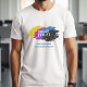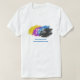 Uma t-shirt com barra colorida de pincel em quatro cores: amarela, rosa, azul e preta para atividades de serviços de impressão, mas também impressão, identidade gráfica ou visual, pintor, marca pessoal, etc.