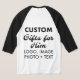 Capas Black Raglan 3/4 e White Body Baseball Jersey T-Shirt personalizados personalizados no impressão preto masculino - 5,5 oz. pré-encolher 100% de construção de algodão pesado, ajustado padrão, verdadeiro ao tamanho. Agulha dupla costurada no fundo e mangas. Carregue logotipo, foto, imagem, design e adicione seu próprio texto para fazer seu próprio aniversário personalizado, Natal, Dia de os pais, celebração de Dias de os namorados, presentes de escritório para ele (homem, homens, marido, namorado, pai, pai, jovem, filho).