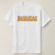 Camiseta masculina blanca, básica, con letras en el pecho. Justo donde caen las migas...