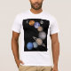 Camiseta Básica de Canvas Bella com uma montagem de planetas do nosso sistema solar a partir de imagens da NASA.