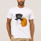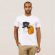 Camiseta engraçada de basquetebol com uma lebre branca num grande chapéu alto e uma bola de basquetebol. Qualquer fã do esporte precisa desta. Personalize o texto no chapéu alto da lebre.