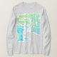 De cor clara e pastel. Um batik, design contemporâneo em tons de verde-claro e aqua apresenta um padrão de abstrato, que combina áreas transparentes com a cor de fundo da camisa (mostrada aqui em "cinza", manga longa). Um olhar criativo, relaxado, de praia e tropical para iluminar seu visto casual e cotidiano, seja saindo em casa ou com amigos, praticando esportes, ou indo pela cidade. Dada a camisa, o estilo artístico e individualizado contribui para um sentimento de "união", que pode ser especialmente revigorante para aqueles que trabalham remotamente e/ou passam muito tempo em casa.