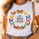Spread positivity and beauty with this “Be Kind Always” Butterfly Wreath T-Shirt. The design features a vibrant circle of colorful butterflies forming a delicate wreath around the uplifting message “Be Kind Always.” Soft floral accents and bright butterfly wings create a cheerful, nature-inspired look that feels both stylish and meaningful.