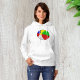 Uma bola de praia significa diversão e este design de bola de praia colorida parece divertido. Apresentando as cores azul, amarelo, verde, vermelho, branco e laranja, esta bola de praia é um design excelente. A bola de praia parece excelente neste capuz feminino. Perfeito para si mesmo ou como presente