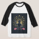 Conceito de design: a camisa apresenta um gráfico ousado e vibrante que capta a energia e o entusiasmo de um desempenho DJ ao vivo. A peça central da design é uma mesa giratória estilizada, intricadamente detalhada com ondas sonoras coloridas que irradiam dela, simbolizando os poderosos batimentos e ritmos que unem pessoas no chão da dança. Paleta de cores: o design utiliza uma combinação impressionante de cores neonatais — azul elétrico, rosa quente e amarelo claro — posicionadas contra um fundo preto elegante ou marinho profundo. Esta paleta de alto contraste não só se destaca como evoca a atmosfera noturna dos clubes e festivais