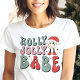 Celebre a temporada com esta divertida camiseta de Natal "Holly Jolly Babe" inspirada no estilo retrô! Com letras vermelhas e verdes em estilo vintage e um simpático Papai Noel de desenho animado, este design é perfeito para quem ama moda natalina nostálgica. O vibrante estilo retrô adiciona charme e humor ao seu guarda-roupa de Natal, tornando-o ideal para festas ou uso casual no inverno. Esta camiseta também é um presente divertido e excêntrico para quem gosta de uma mistura de retrô e humor durante a temporada de Natal.