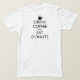 Xícara de café com "COFÉ BEBIDO E ROSQUINHAS COMIDAS." Design baseado na moralidade britânica de 1939, poster "Mantenha calma e continue". Para amantes de café.