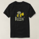 O design de Bee Buzzing apresenta uma grande abelha amigável zunindo com a palavra "buzzin" abaixo. Essa é uma abelha refrigerada.