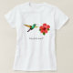 Camiseta Beija-flor-de-cor-branca e flor-vermelha