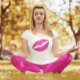 Lábios cor-de-rosa brilhante. Batom cor-de-rosa. Impressão design de beijo de arte digital com gráfico. Adicione texto para criar seu próprio tee personalizado.