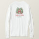A design de camiseta sazonal apresenta um cachorro de córgi bonito decorado com arco de Natal e fita e verde que pode ser personalizado com seu nome. Cor de fundo branca.