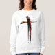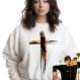 Celebre a razão da temporada com esta camisa poderosa e artística. A design apresenta uma cruz renderizada em um estilo rústico e texturizado de pincel, com um pôr do sol sereno e uma paisagem visíveis através do centro. É uma maneira bela e reverente de lembrar o coração espiritual do Natal. Você pode personalizar a camisa para adicionar seu desejo de Natal ou o nome de seus entes queridos.