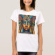 Uma design de camiseta vibrante e surpreendente que apresenta a visão icônica de um faraó egípcio. O trabalho de arte apresenta um retrato ousado e estilizado com detalhes intrincados em uma paleta colorida. A morada do faraó é enfeitada com penas em tons de azul, verde e amarelo, enquanto sua face é enquadrada por brincos grandes e ouros. O efeito geral é a prisão visual e culturalmente significativa, fazer a escolha perfeita para uma design de camiseta ousada e atraente.
