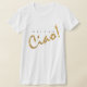 Esta camisa elegante lê o "Ciao!" significando ambos olá!, e adeus no italiano. www.zazzle.com/bellaiv