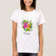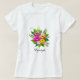 Trendy linda camisa de buquê de flor colorida. Flores de rosa, rosa e tons amarelos. O texto pode ser personalizado.