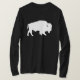 Um esboço de sombra de Silhouette de um Buffalo na camiseta dos homens negros. Camiseta de manga longa da América nativa. Este touro branco de Buffalo é melhor em uma camiseta preta, mas espera que a imagem pareça preferencialmente de cinza prateada do que um branco brilhante. Uma ideia de presente de excelente para ele.