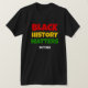 Stylish BHM T-SHIRT with plain black background and bold red, yellow and green text which emphasizes BLACK HISTORY MATTERS 24.7.365. Part of the BLACK HISTORY MONTH Collection.