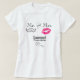 Uma camiseta de aniversário de casamento com lábios de kissy cor-de-rosa glamourosos e uma ilustração masculina retrorreflectora do bigode. O texto diz o Sr. e a Sra. e você pode personalizar com seu nome e texto personalizado como "25 anos juntos". Terminado com um coração decorativo de rico robusto.