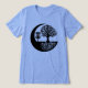 Disc golf themed t-shirt. Black and white disc golf basket and tree roots silhouette.