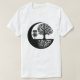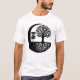 Disc golf themed t-shirt. Black and white disc golf basket and tree roots silhouette.