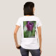 Camiseta básica de mujer en color blanco, confeccionada en tejido suave y cómodo. Presenta un diseño floral multicolor en la parte delantera, que aporta un toque fresco y femenino, y una flor morada en la parte trasera como detalle especial que la hace única. De corte sencillo y versátil, es perfecta para combinar con cualquier look casual y llevar en el día a día.