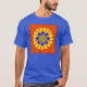 Uma flor vibrante com pétalas em laranja, laranja vermelha, azul de cobalto, azul claro, verde e amarelo.
