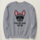 Esta camisola de Bulldog francesa faz o presente perfeito para Dia de as mães e aniversários. É ideal para dar a uma mãe de cão do seu amado francês. A design apresenta uma ilustração azul do rosto do Bulldog Francês com espaço para adicionar sua própria redação.