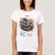 Uma imagem colorida de um cobra azul aninhado em flores laranja está nesta camisa única. Acima da imagem está um texto correspondente que diz "2025" e abaixo está o ano da cobra no zodíaco chinês. O texto é personalizável, portanto, você pode alterá-lo ou removê-lo se desejar.