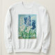 Camisola em uma ilustração botânica, digitalmente melhorada, de rituais azuis e brancos sobre o fundo da paisagem rural