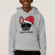 Junte-se à diversão festiva com este lindo capuz de Natal. A design apresenta um buldogue francês azul e bronzeado vestindo um chapéu vermelho de Papai Noel e óculos de sol de aviador com a menção "Papais noeis Patas" impressa por baixo.