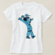 Um homem de desenho animado azul com seu boné de beisebol no dorso assiste seu cachorro correndo até a distância.