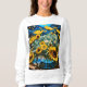 Florero sobre mesa, con paisaje en la noche de fondo, en colores luminosos. Tamaño 8,000 x 8,000, pixeles, 80 pulgadas. Arte digital en paisaje.