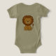 Um body de bebê com uma ilustração de leão em um estilo de desenho animado simples. Macio, divertido e fácil de vestir, este design funciona bem para roupas de bebê, presentes temáticos de safári e uso diário para os pequenos.