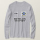 Trabalhador de construção engraçado - trocadilho. Apresentando um sinal azul e branco do estilo da construção com silhueta muscular fazendo dupla pose bicep. E design e tipografia da fita de segurança amarela e preta. Frente apresenta o design de logotipo no canto superior esquerdo e as iniciais personalizáveis no canto superior direito, e seu próprio texto personalizado embaixo - mantenha o texto de exemplo (Departamento de Construção de Pormenores) ou mude-o para o que quiser, ou simplesmente exclua-o se você preferir nenhum. A parte traseira do design é um logotipo design grande e texto personalizável abaixo. Otimizado para produtos de cor clara.