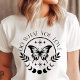 Inspire-se e inspire os outros com esta linda camiseta "Faça o que você ama" inspirada no estilo boho. Com um bold butterfly rodeado por luas crescentes, estrelas e detalhes folhados, este design encoraja você a seguir suas paixões. A paleta minimalista em preto e branco torna-a uma adição versátil a qualquer guarda-roupa, enquanto os elementos boho lhe dão um charme único e livre. Perfeita para o uso diário ou como uma declaração motivacional, esta camisa lembra você de perseguir o que ama e abraçar sua jornada. Adicione esta peça empoderadora à sua coleção hoje mesmo!