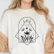 Adote o estilo boho moderno com esta camisa geométrica minimalista com luas crescentes, elementos folhosos e linhas elegantes. O design combina simbolismo natural e celestial de uma forma ao mesmo tempo elegante e marcante. Perfeita para quem aprecia designs discretos, mas significativos, esta peça preta e branca é fácil de combinar com qualquer roupa casual. Se você é fã da estética boho ou ama a fusão da natureza e da geometria, esta camisa é uma adição estilosa e significativa ao seu guarda-roupa. Use-a para expressar seu amor pelo equilíbrio, pela natureza e pelo cosmos.