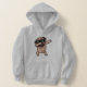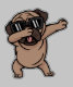 Good Mood Pug with Sunglass Dabbing Design apresenta uma ilustração de um cachorro com óculos pai dançando.