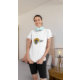 Camisa feminina com mensagem positiva mostra uma abelha e girassol com texto personalizável de "gentileza importa"