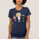 Camiseta do marinho com uma ilustração bonito dos desenhos animados de uma enfermeira feliz com um menino e uma menina feridos. Este design está disponível em uma vasta gama de roupa - apenas escolha seus estilo, tamanho e cor.