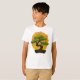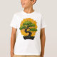 Uma bela ilustração de uma árvore bonsai que se senta num pote preto contra um fundo circular amarelo brilhante.