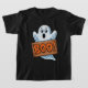 Ce design d’Halloween met en scène un fantôme de style cartoon avec une expression surprise, flottant derrière un panneau en bois. Le panneau affiche le mot “BOO!” en lettres rouges et déchiquetées, évoquant le classique effroi associé aux fantômes et aux surprises d’Halloween. Le fond minimaliste met en valeur le fantôme et le panneau, créant un design ludique et festif parfait pour les décorations, cartes de vœux ou matériel promotionnel pour les événements d’Halloween.