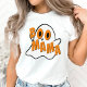 Camiseta fantasma do Dia das Bruxas Branca com fantasma branco e texto cor de laranja "boo mama". Festa de excelente de Halloween / truque ou camisa de tratamento para mães.