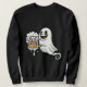 A cheerful ghost holding a big drink cup, mixing Halloween vibes with party energy. Perfect for those who love humor, spooky fun, and a good drink.