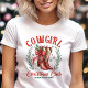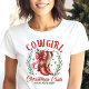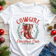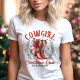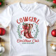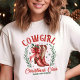 Celebrar as férias com uma divertida reviravolta Ocidental! Esta design divertida mostra um par festivo de botas vermelhas de cowboy adoradas com uma coroa de férias, fazer que seja a escolha perfeita para aqueles que amam o Natal e o estilo de vida da cowboy. Quer você esteja se preparando para uma festa de férias ou apenas queira mostrar seu espírito sazonal, esta camisa do "Clube de Natal da Cowgirl" é uma forma excelente de combinar alegria de férias e talento rural. Faz um excelente presente para amantes da moda ocidental, entusiastas do rodeio, ou qualquer um no "Clube de Natal da Cowgirl"!
