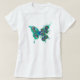 Borboleta detalhada, desenhada artificialmente, ficcional, verde, com penas verdes, bonitas e pavões em fundo branco.