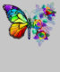 Arco-íris, borboleta monarca luminosa, pintada artisticamente com buquê de rosas iridescentes, brilhantes e luminescentes sobre fundo preto. Borboleta-arco-íris.