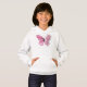 Arranjo de flores de borboleta cor-de-rosa com cereja japonesa cor-de-rosa floresce em fundo branco.